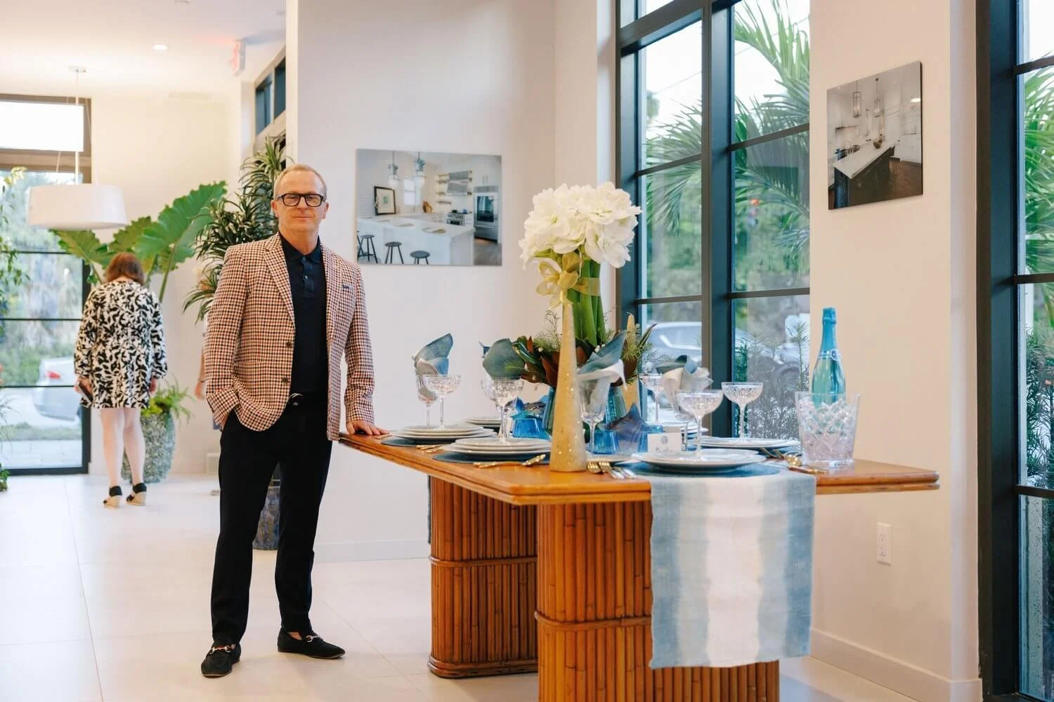 Designer Stephen Mooney at the Bakes and Kropp Tablescapes event.