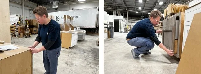 “I actually didn’t end up joining as a woodworking apprentice. I started out running our shipping department and our CNC machine, which makes all the plywood parts of the cabinets. I’ve done a little bit of everything here, but I’ve been in my current role for about a year and a half. When the Shop Floor Manager position was created, I took that on.“